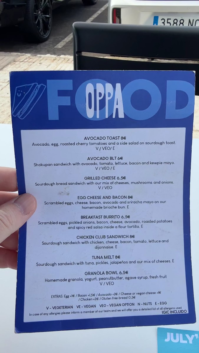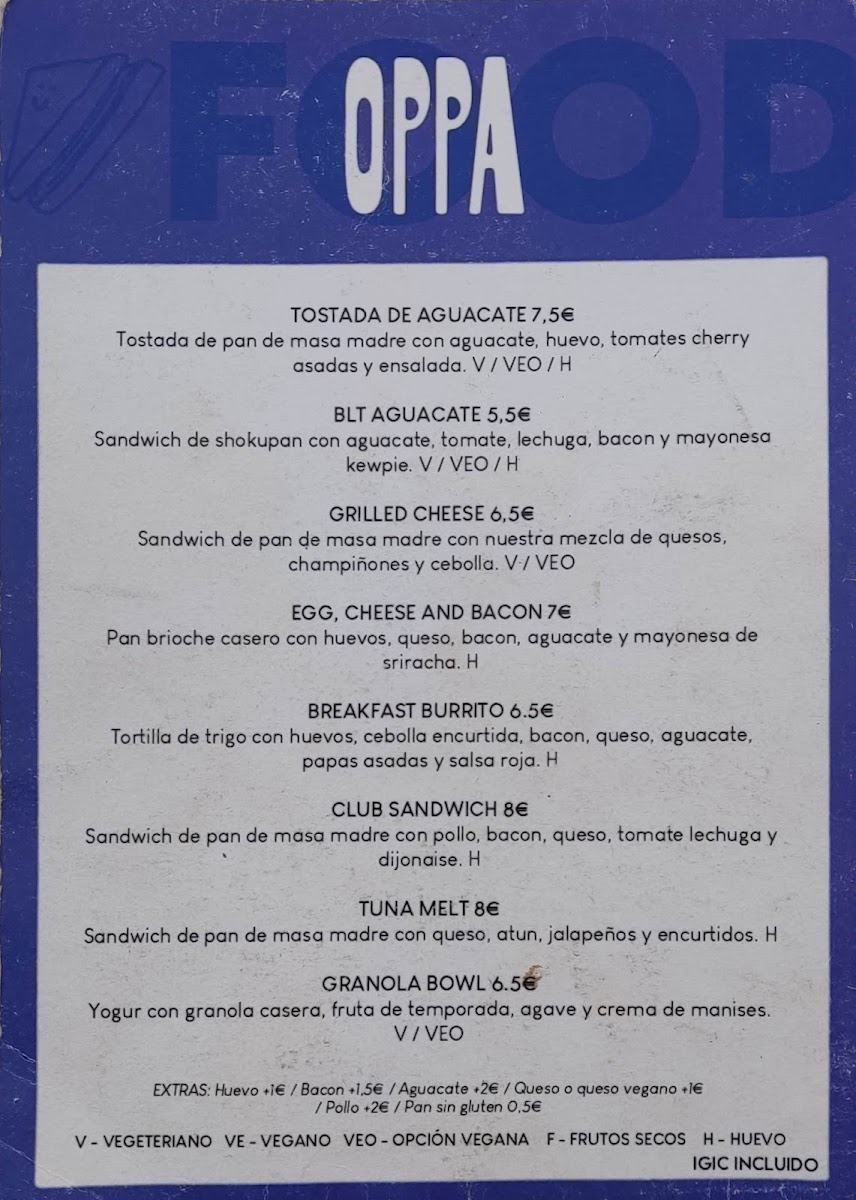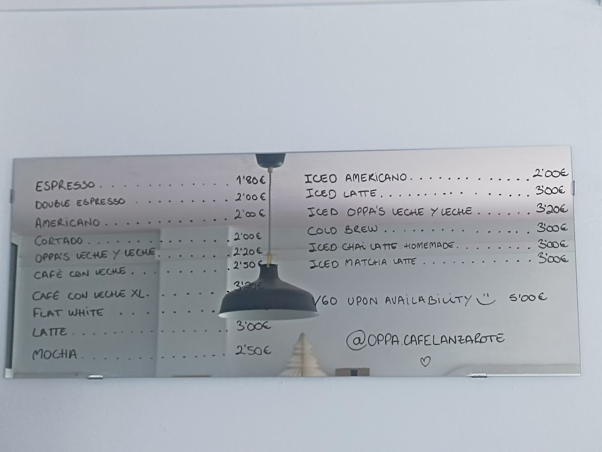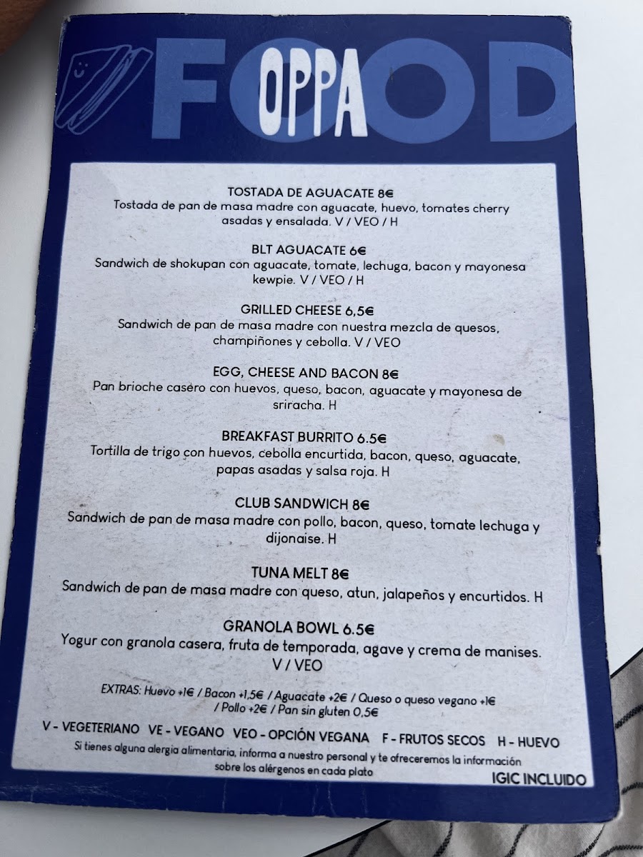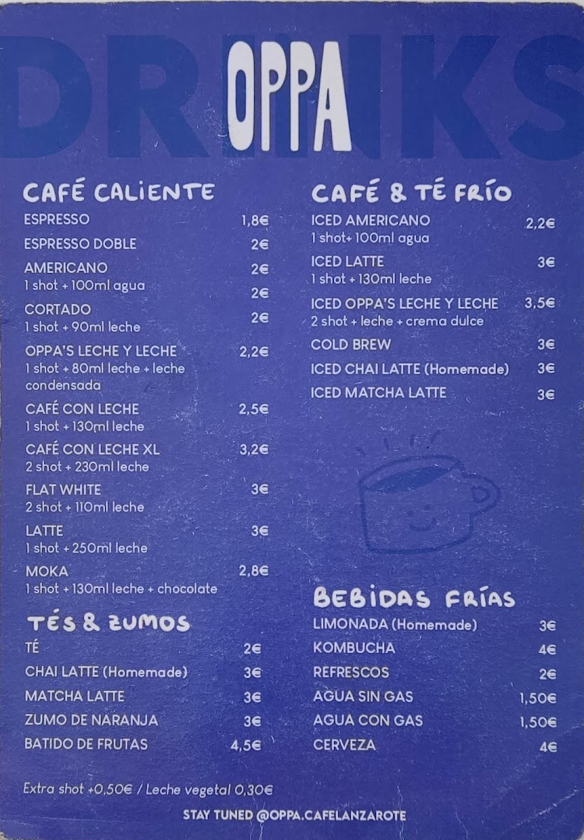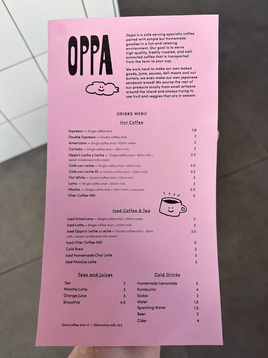 Oppa Specialty Coffee and Breakfast Menu